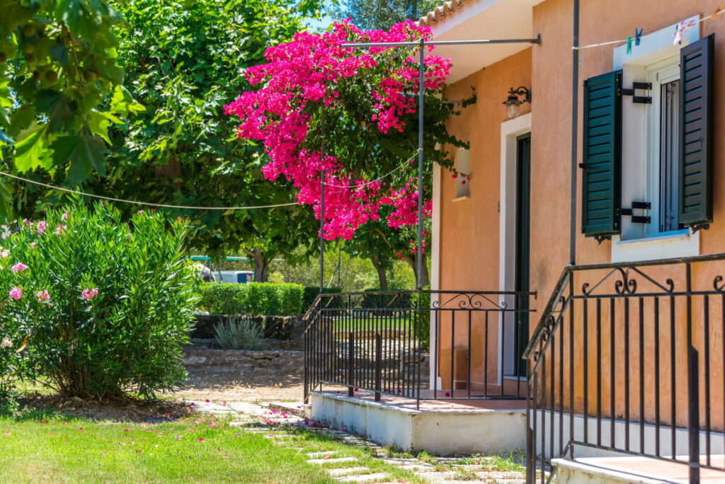 Nemorosa Houses is built in a fenced, 4,5 acre space full of greenery. Sit back on the grass, under the shade of the trees, surrounded by flower beds in full bloom. Relax at the two, shaded, outside dining areas. You will also find B.B.Q. facilities and a traditional wood oven.